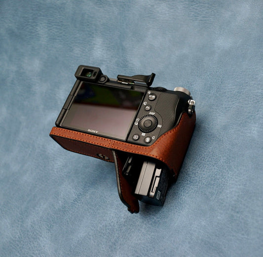 Edition Handmade Genuine Leather hand crafted hand stitch Sony A7C Camera Half cases insert bag tripod mount SD & battery access door
