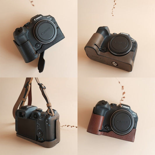 Canon EOS R7 R10 Handmade Half Case Genuine Italian leather insert Camera bag Holster sleeve SD battery access magnetic closure Protector