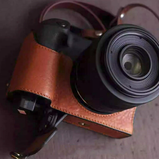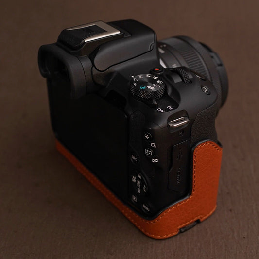 Canon EOS R50 R100 Handmade Half Case Genuine Italian leather insert Camera bag Holster sleeve SD battery access magnetic closure Protector