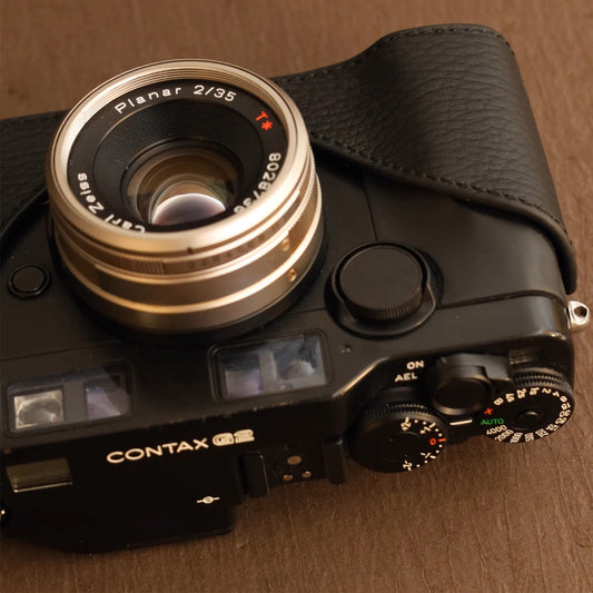 Contax G2 Handmade Half Case Cowhide Genuine leather Camera insert bag Protector HandGrip Holster sleeve battery access magnetic closure